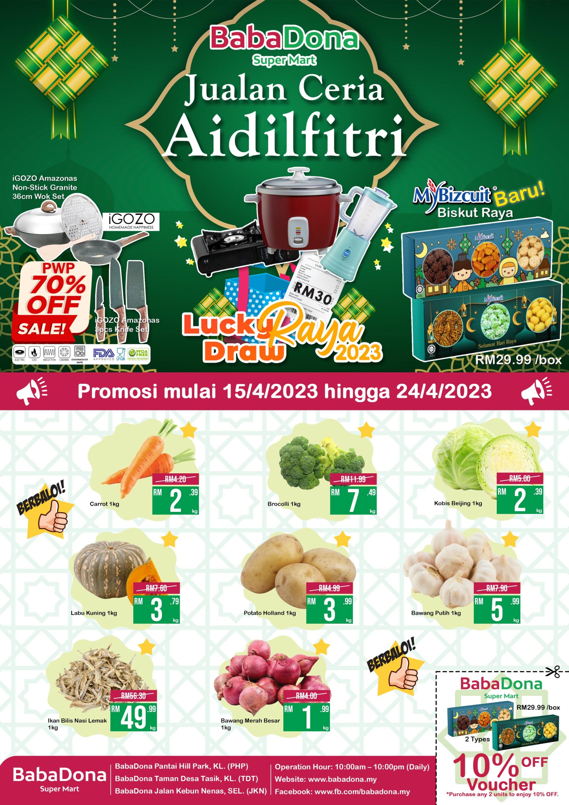 15 April 2023 to 24 April 2023 – BabaDona Super Mart, Pantai Hill Park / Taman Desa Tasik / Jalan Kebun Nenas.