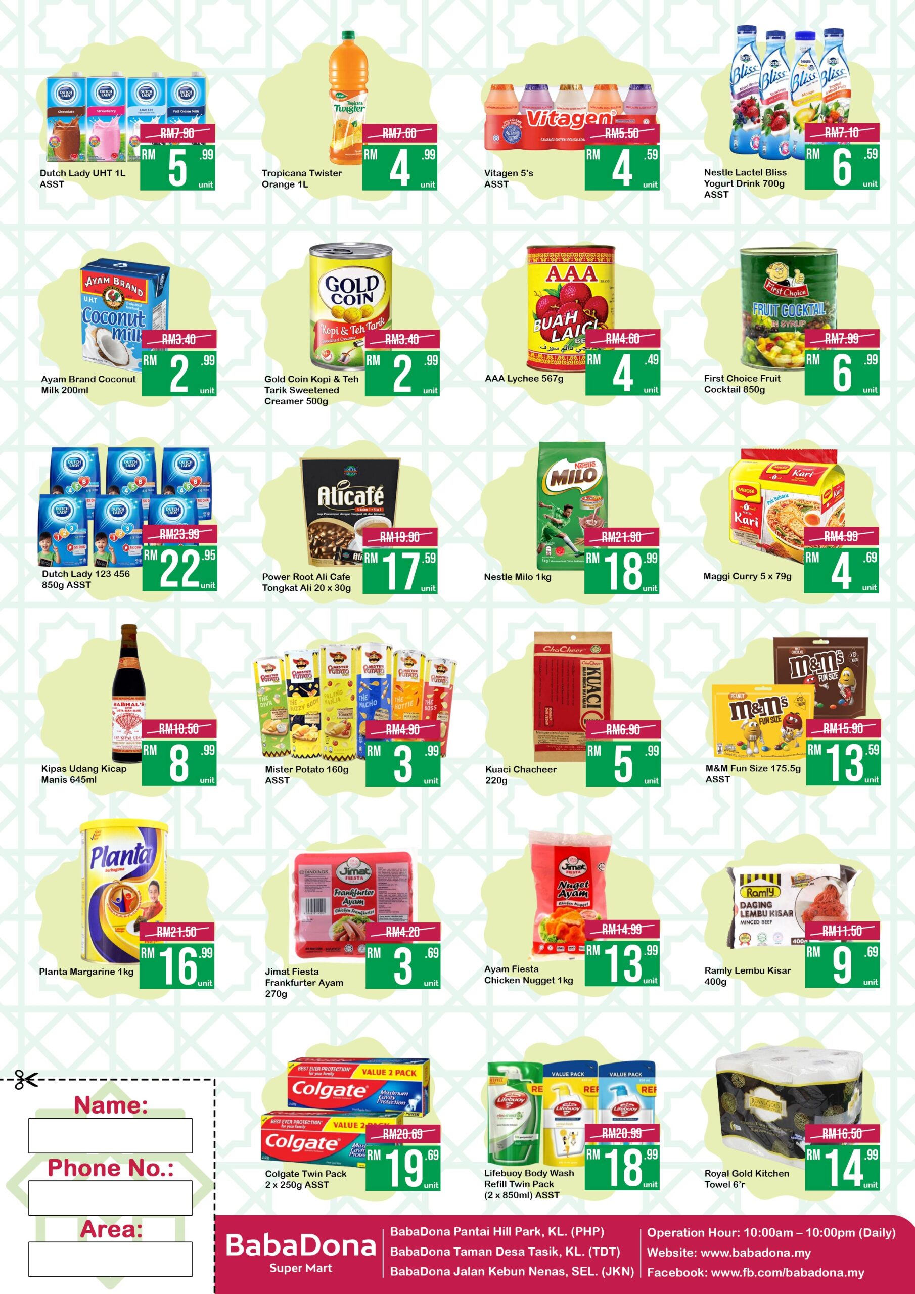 20 March 2023 to 31 March 2023 – BabaDona Super Mart, Pantai Hill Park / Taman Desa Tasik / Jalan Kebun Nenas.