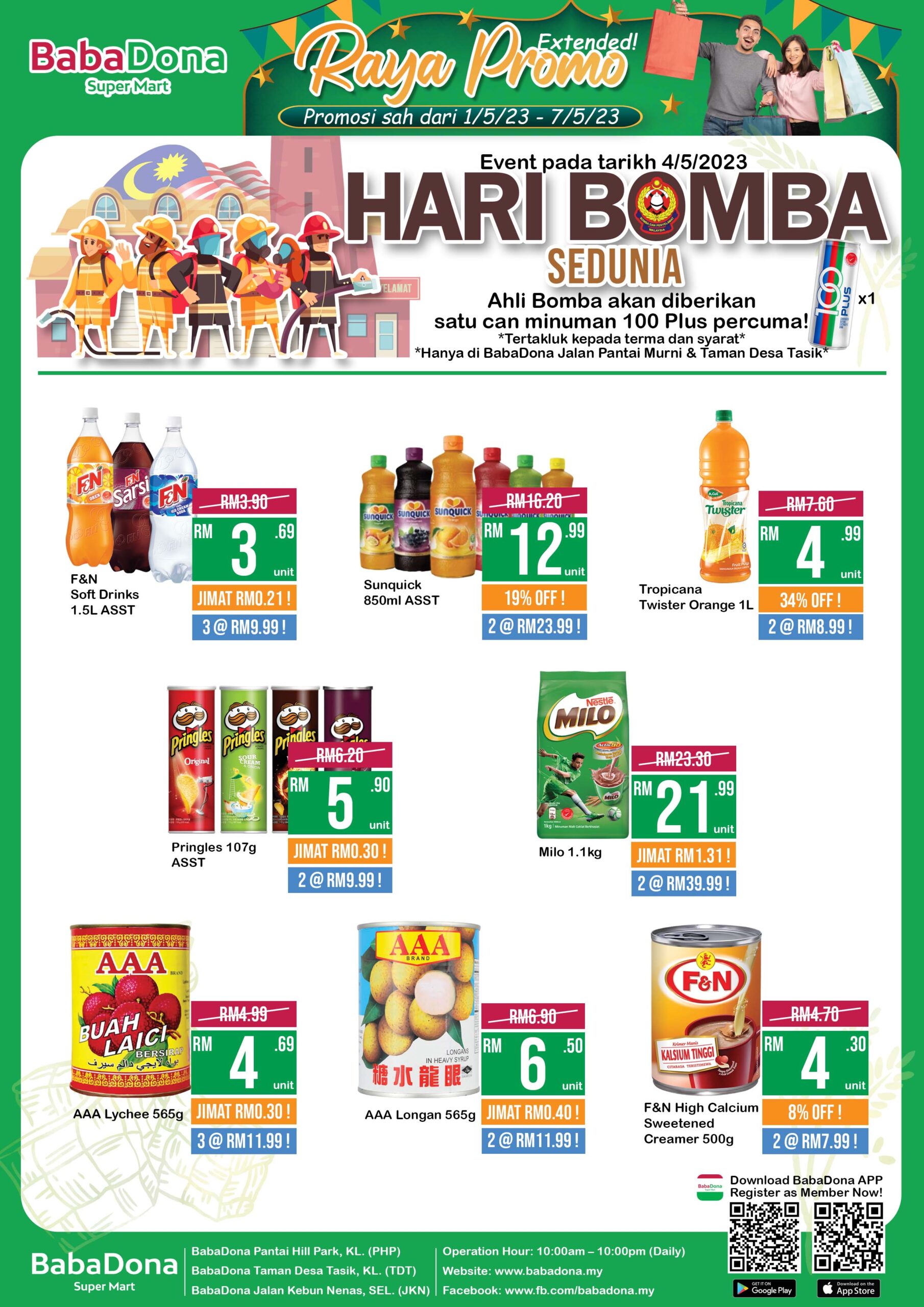 1 May 2023 to 7 May 2023 – BabaDona Super Mart, Pantai Hill Park / Taman Desa Tasik / Jalan Kebun Nenas.