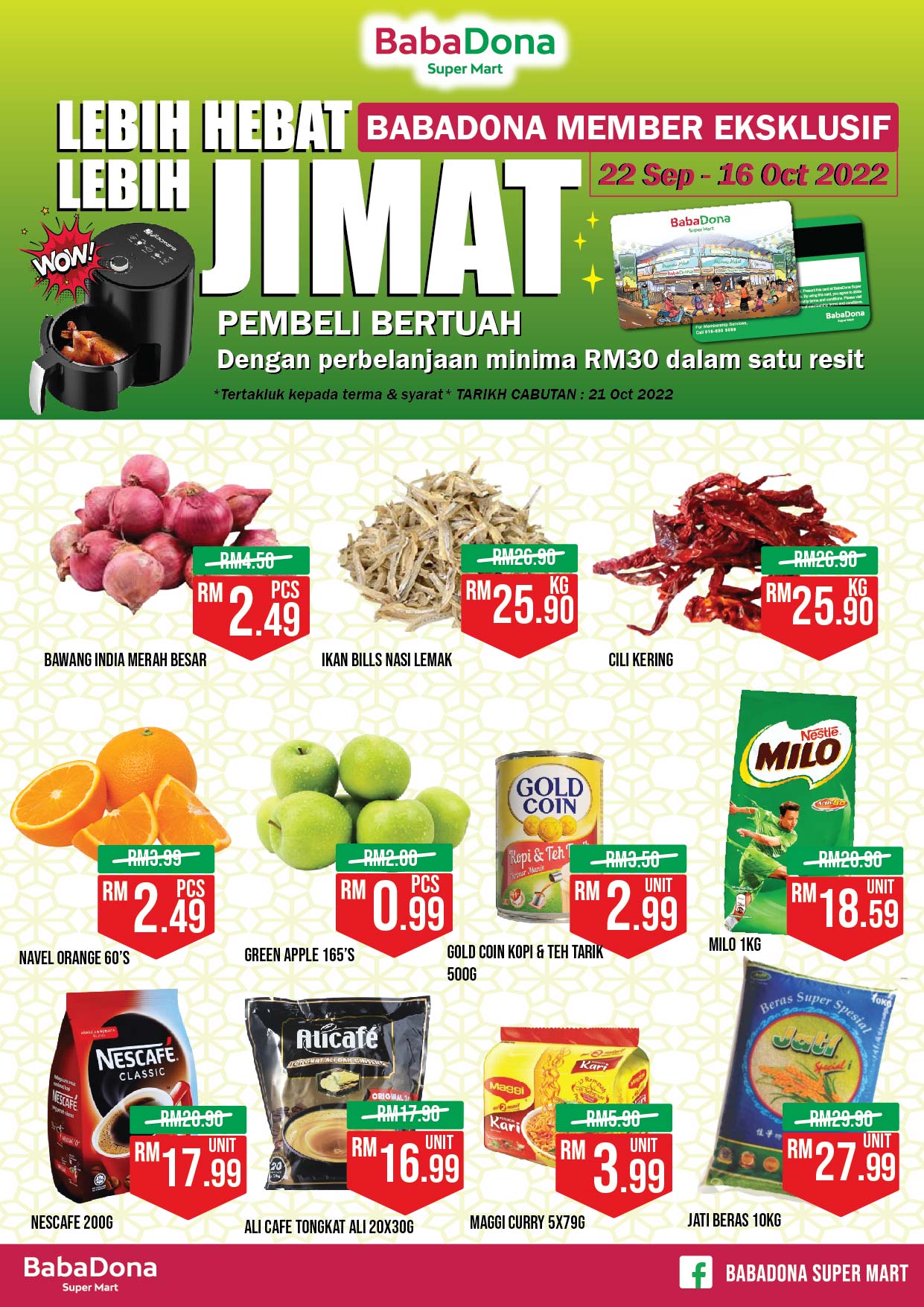 22 Sep – 16 Oct 2022, special promosi kepada semua BabaDona Members. 🎉🎉🎉